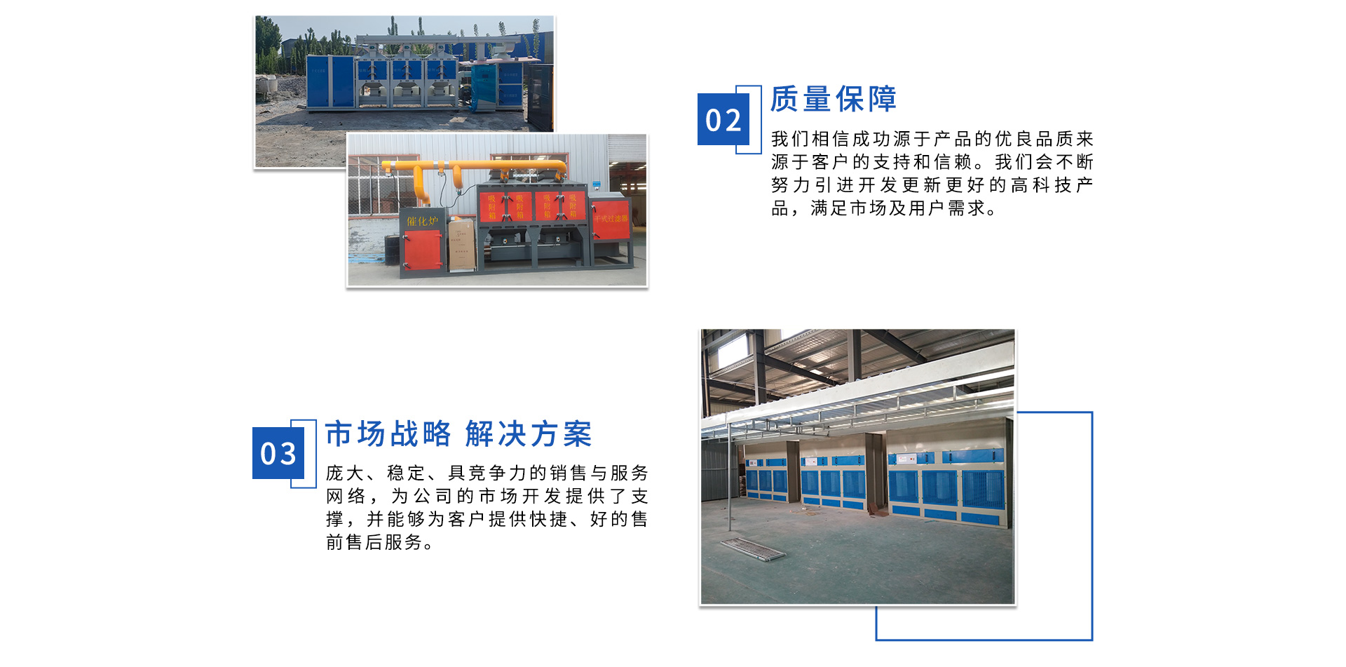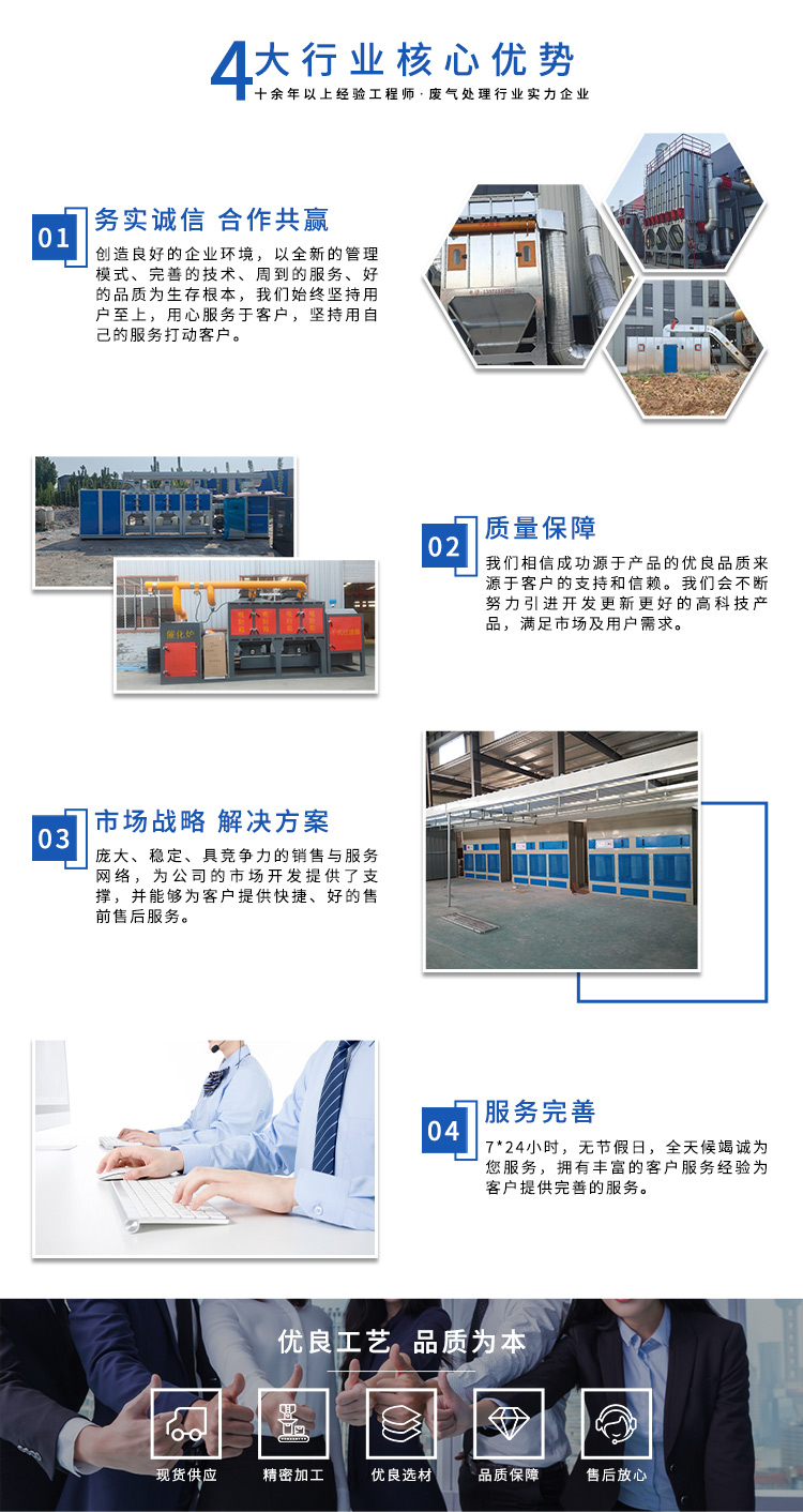 公司自成立以來,始終專注于工業廢氣、污水、粉塵等環(huán)境污染的治理,先后研發(fā)出催化燃燒設備、光氧催化廢氣處理設備、低溫等離子廢氣處理設備、粉塵處理-體化設備等一系列環(huán)保設備,產品先后通過ISO901質量管理體系認證、中國環(huán)境保護產品認證。
